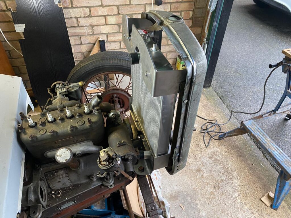 Lou Ratcliffe and Mike Pixton are into classic cars. They belong to the local classic car club. At Mates they are engaged in reconstructing an Austin 7. They have the basic chassis shown in the photo above, and want to turn it into something like the “blue racer” seen in the commercial photo below.